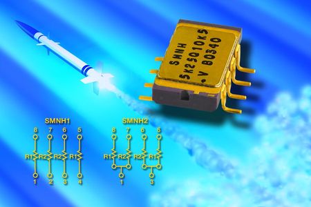電阻網絡采用鍍金的無鉛端子,所采用的Z箔技術將TCR提高到到了±0.05ppm/℃。SMNH電阻網絡現可提供樣品,并已實現量產,樣品的供貨周期為兩周,標準訂貨的供貨周期為四周。