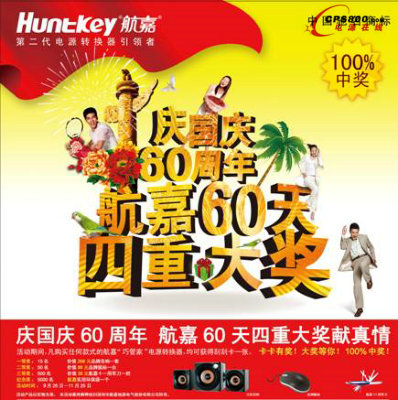 為慶祝偉大祖國(guó)成立60華誕,世界知名專業(yè)電源服務(wù)商,中國(guó)電源第一品牌航嘉將從9月25日開始舉辦“航嘉60天四重大獎(jiǎng)獻(xiàn)真情活動(dòng)”,用百分百的真愛(ài),百分百的大獎(jiǎng)回饋全國(guó)的新老客戶。