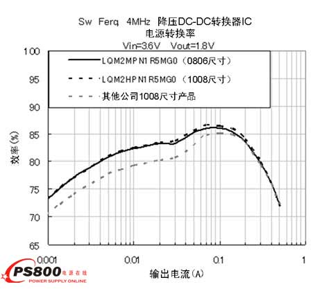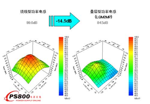 另外,在移動設備多功能化進程中,對機器的小型、薄型化要求也逐步提升。為此就必須減少元件的使用數量,或者將元件做到更小。此對策是借由提高DC-DC轉換器的開關頻率,減小必要的功率電感和電容的額定參數值,以此來適應元件的小型化。將集中控制電源的PMIC(PowerManagementIC)的開關頻率,將從一直使用的1MHz變為3MHz,還有管理單獨電源的DC-DC轉換器IC中主流頻率一直是3~4MHz,對于此種情況,作為主要元件的功率電感就需要1.0uH到2.2uH的低感值產品。而開關頻率數的提高使靜噪成為必須,為了解決這些課題,推動了功率電感的開發。