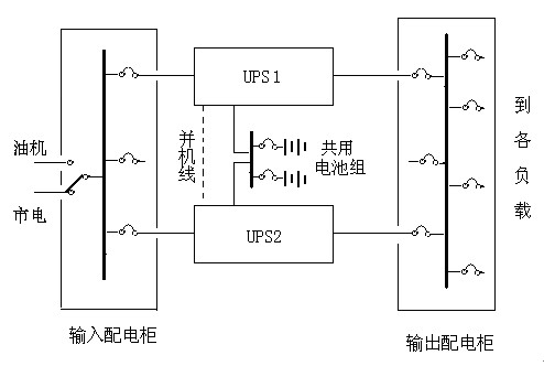 對于上述需求,按照傳統思路一般會選用由性能較好的UPS組成的單機運行方案或者雙機串聯熱備份方案。這里介紹一種新型的UPS應用方案,那就是由臺達N+系列UPS組成的雙機并聯共享電池組方案。