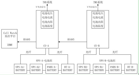 UPS之所以稱為不間斷電源,主要的原因是有電池的存在,因此電池能否穩定運行,直接影響著UPS的穩定運行,客戶要求電池采用國外知名品牌,同時要求對電池進行在線的監控,具體要檢測到電池的單體電壓、電流和內阻。