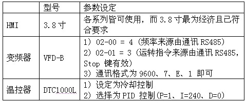 系統通過上位臺達HMI進行控制系統的監控,通過RS485協議連接臺達變頻器和溫控器;前者用于驅動送風量,后者用于控制三通冰水閥;這樣通過送風量和冰水閥的調節就可以實現對中央空調恒溫系統的有效控制。
