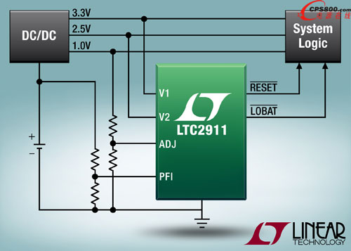 日前,凌力爾特公司 (Linear Technology Corporation) 推出三通道電源監視器 LTC2911,該器件面向低至 0.5V 的低壓系統,具有電源故障報警功能。在某些應用中,主輸入電源的監視與中間總線電壓的監視同等重要,其目的在于為主機提供電源故障的預警和信號關斷程序。除了三個電壓輸入之外,LTC2911 還提供了一個用于支持此項功能的電源故障輸入和輸出,在整個工作溫度范圍內的門限準確度達 1.5%。