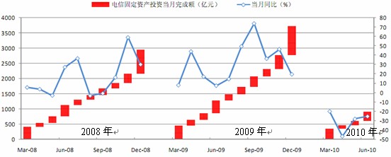 圖1 2008-2010年度電信固定資產投資同比下滑