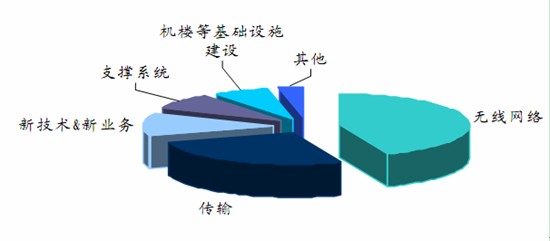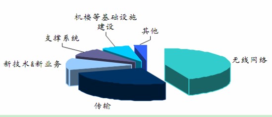 2010年中國移動資本開支預算為1230億元,其上半年投資完成615億元,預算投資完成度為50%。上半年的投資細分中,無線網絡投資占比為44%,傳輸網絡占比為26%,新技術和新業務占比為12%,其余為支撐系統(8%)、基礎設施建設(7%)以及其他投資(3%)。