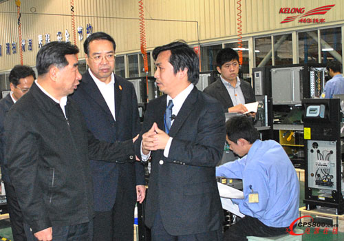 國務(wù)院副總理回良玉視察科華恒盛生產(chǎn)車間與陳成輝總裁親切交談鼓勵加強自主創(chuàng)新