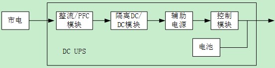 從單個UPS的設計來說,可以把整個產品按照模塊進行劃分,下面圖中是一個典型的UPS系統結構圖