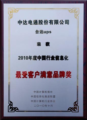 近日,臺達UPS榮獲由《中國計算機報》評選的“2010年度中國行業信息化最受客戶滿意品牌獎”,標志著臺達UPS在行業信息化領域得到更進一步的認可,同時也充分體現了市場及廣大客戶對于臺達UPS十八年耕耘成果的肯定。