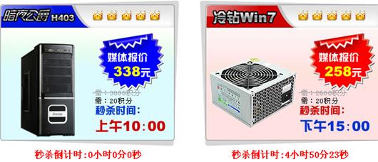 航嘉3.15系列活動之一:限時秒殺,機箱電源天天免費送已于今天開始。3月10日——4月10日,登錄航嘉積分樂園頁面,便可參加秒殺活動,活動期間每天都會有一臺價值338元的暗夜公爵機箱和一臺價值258元的冷靜王鉆石WIN7版電源免費送出。10日上午,重慶市九龍坡的楊先生已經幸運的秒殺到了一臺暗夜公爵H403機箱。