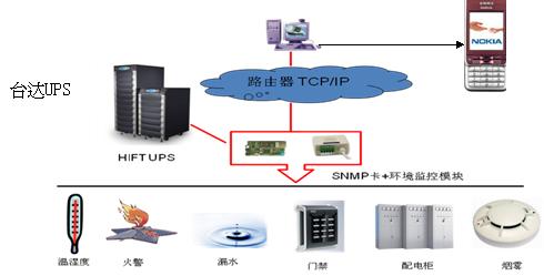 此次監控方案是在現有的UPS設備上架設的,臺達UPS的SNMP卡可在機器上實現熱插拔,不影響原有系統的運行。配置的信息如下:
