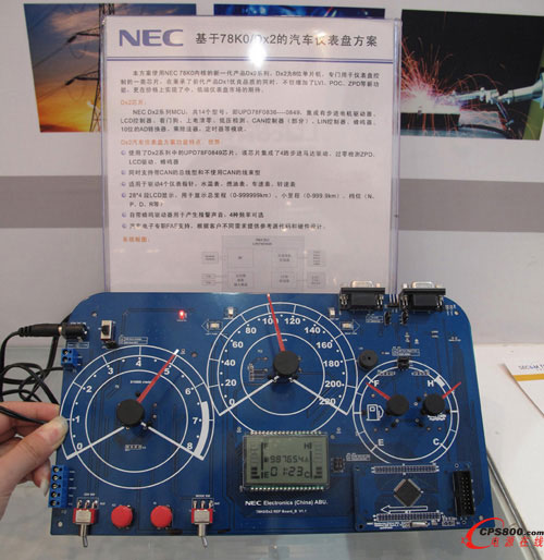 大多數人想到汽車儀表盤市場MCU供應商時,可能更多地想到的是瑞薩和富士通微電子,沒想到NEC在這一市場居然處于市場領先地位。2010年慕尼黑(上海)電子展上,NEC電子授權分銷商深圳世強電訊有限公司市場經理陳來杰向記者表示:“盡管瑞薩在日本豐田車儀表盤市場份額高過NEC,但在海外市場情況恰好相反,而且NEC在中國汽車儀表盤市場份額更高達50-60%。NEC 78K0 D系列MCU主要針對汽車儀表盤市場,78K0/DX2是NEC最新推出的針對中國汽車儀表盤市場的帶有LCD驅動器的MCU,有帶CAN接口或不帶的兩種型號。未來的DX4系列MCU主要針對虛擬汽車儀表盤市場!