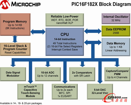 nanoWatt XLP技術一直是電池友好MCU方面的行業典范,該技術與這些全新MCU的超低工作電流消耗相結合,將整體能效提升至前所未有的水平。與上一代8位PIC16 MCU相比,Microchip增強型中檔8位架構性能增加了50%,并且14條新指令使代碼執行能力提高了40%。