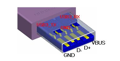 USB3.0的A型接口外形與USB2.0的A型接口兼容,不同的地方是USB3.0接口添加了額外的數(shù)據(jù)線來傳輸超高速數(shù)據(jù)。其結(jié)構(gòu)如下圖所示: