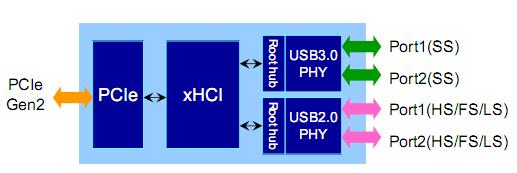 NEC電子在USB3.0標(biāo)準(zhǔn)公布的同時(shí),率先推出了世界上第一顆符合USB3.0標(biāo)準(zhǔn)的由世強(qiáng)電訊代理的主控芯片uPD720200。其功能框圖如下所示: