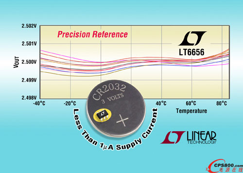 日前,凌力爾特公司 (Linear Technology Corporation) 宣布推出精確的 SOT23 電壓基準 LT6656,該器件以僅為 850nA 的電源電流工作。LT6656 具有不到 0.05% 的初始誤差、以及低于 10ppm/°C 保證的溫度漂移。這種精確度和超低功率相結合,非常適用于便攜式、無線和遠程設備。LT6656 具 5mA 的輸出驅動能力,適合多種應用。例如,對一個低功率、高分辨率 ADC 來說,LT6656 既可以作為電源電壓、又可以作為精確基準。LT6656 可以代替低功率并聯基準,在可變負載電流和電源電壓存在的情況下,提供更高的效率和穩定性。就很多應用而言,極低的靜態電流允許 LT6656 保持始終接通的穩定狀態。
