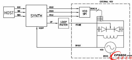 芯片自動根據需要選擇合適的開關,這種設計使用較小的電壓就可以驅動VCO工作。在設計環路濾波器時不必使用運放等有源電路,僅用無源濾波器就可以實現。這使得外圍電路較為簡單,減輕了RF工程師的負擔。