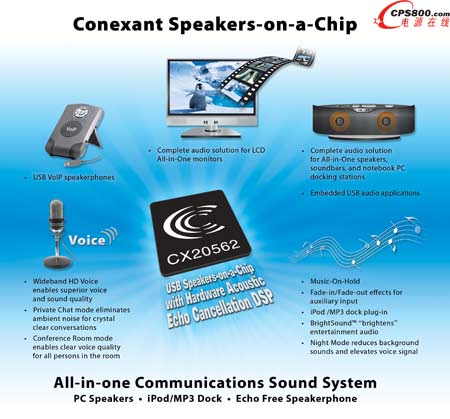 為影像、音頻、嵌入式調(diào)制解調(diào)器和視頻監(jiān)控應(yīng)用提供創(chuàng)新半導(dǎo)體解決方案的領(lǐng)先供應(yīng)商科勝訊系統(tǒng)公司(納斯達(dá)克代碼:CNXT)宣布,其屢獲殊榮的 CX20562 片上揚(yáng)聲器音頻解決方案為業(yè)界領(lǐng)先的最佳耳機(jī)解決方案供應(yīng)商 VXi Corporation 采用,用于新型 USB 耳機(jī)適配器。VXi 的 X200 適配器針對(duì)的是統(tǒng)一通信(UC)、VoIP 電話和語(yǔ)音識(shí)別等要求高質(zhì)量語(yǔ)音和音頻、基于計(jì)算機(jī)的語(yǔ)音通信應(yīng)用。目前VXi 的全球分銷商和經(jīng)銷商已開始供貨。