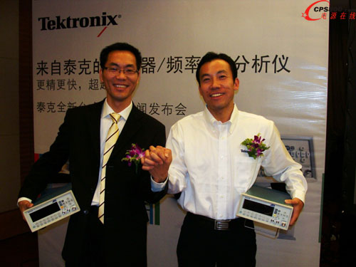 泰克大中華區(qū)分銷業(yè)務高級技術營銷經(jīng)理鄧錦輝和負責直流電源產(chǎn)品線的產(chǎn)品市場經(jīng)理鄒全