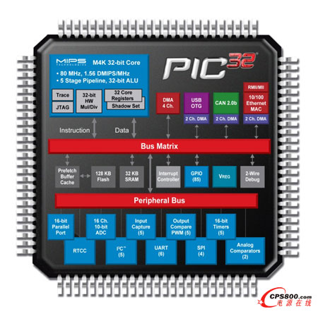 MIPS科技公司市場營銷及業務發展副總裁Art Swift表示:“Microchip最大限度地提高了MIPS32 M4K內核的原始性能,同時利用其高靈活性優勢創建了一個32位單片機架構,超越了苛刻的嵌入式設計要求。Microchip憑借這個全新PIC32系列的性價比及其廣泛的集成外設設置,為設計人員提供了極大的價值!