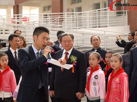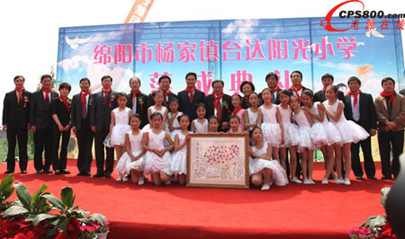 國務院參事、中國可再生能源學會理事長石定寰、中國勘察設計協會理事長王素卿、國家住宅與居住環境工程技術研究中心主任仲繼壽、四川綿陽市市長曾萬明、綿陽市涪城區區委書記席世洪、臺達集團董事長鄭崇華等人出席“綿陽楊家鎮臺達陽光小學落成典禮”