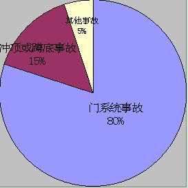 門系統(tǒng)事故,即剪切、擠壓、墜落重大傷亡事故占電梯事故的比重最大,發(fā)生也最為頻繁,而且這類事故對當(dāng)事人有較大的傷害,大部分危及生命。