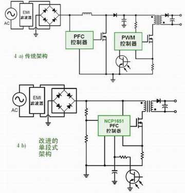 圖2:需要PFC的LED驅動應用中不同架構對比