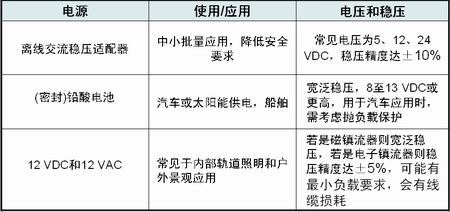有一系列高亮度LED應用工作在8至40 VDC范圍的電源,這些電源包括鉛酸電池、12-36 VDC適配器、太陽能電池以及低壓的12 和24 VAC交流系統。這類的照明應用眾多,如活動式照明、景觀和道路照明、汽車和交通照明、太陽能供電照明,以及陳列柜照明等。