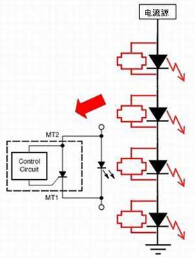 在這方面,可以采用安森美半導體的NUD4700 LED分流保護解決方案。圖5是這種分流保護解決方案的應用及原理示意圖。