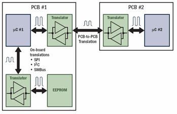 安森美半導體的邏輯轉換器是一種雙電源電壓邏輯轉換器,可以連接在不同的供電電壓下工作的IC和印刷電路板。這類采用獨立電源(VL<VCC,VL = VCC或VL> VCC)的器件具有100 pF的高電容驅動、過壓容限啟用和I/O引腳、非優(yōu)先上電順序和斷電保護功能,可以為印刷電路板內和印刷電路板之間的連接提供靈活的路徑,如圖4所示。