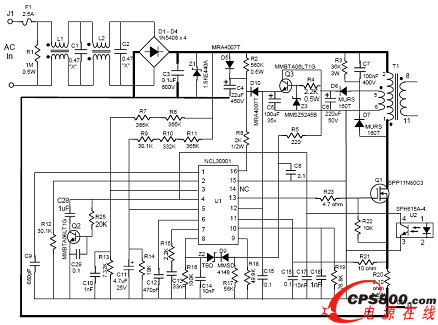 圖2:NCL30001 CVCC 90 W演示板初級側原理圖