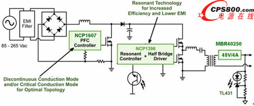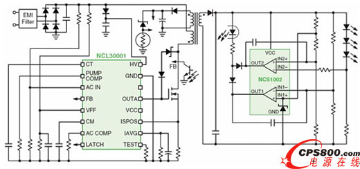 圖5:基于NCP1607和NCP1397的街道照明高能效LED電源方案