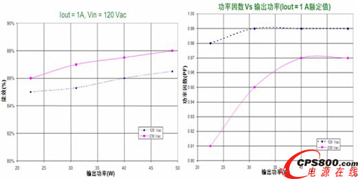 這90 W恒壓恒流演示板接受90至265 Vac的擴展通用輸入電壓(更換元件條件下可支持305 Vac),提供0.7 A至1.5 A的恒定電流輸出范圍(可通過微幅調(diào)節(jié)電阻來選擇)及30 V至55 V的恒定輸出電壓范圍(可通過電阻分壓器來選擇),最大輸出功率90 W,支持50至1,000 Hz調(diào)光控制,并包含可連接至可選調(diào)光卡的6引腳接口,用于模擬電流調(diào)節(jié)/雙亮度等級數(shù)字調(diào)光等智能調(diào)光應(yīng)用。此外,這演示板還提供短路保護、開路保護、過溫保護、過流保護及過壓保護等豐富保護特性。測試顯示,這演示板在50 W輸出功率、1,000 mA輸出電壓/48 V正向壓降條件的能效高于87%(詳見表1),在50%至100%負載條件下功率因數(shù)高于0.9,同時符合IEC61000-3-2 C類設(shè)備諧波含量標(biāo)準(zhǔn)。