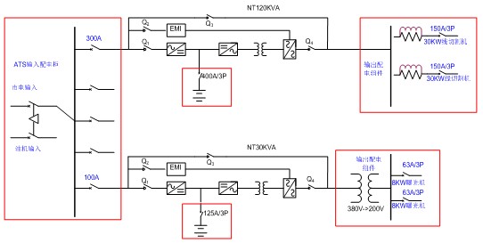 2. 兩臺拋光機配置一套UPS電源,增加輸出變壓器,完成380V/220V—>200V/115V工作電壓變換,適應負載設備。