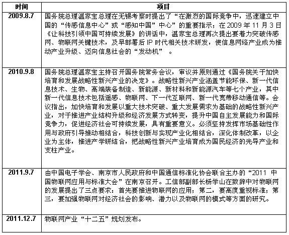 在國家物聯網戰略規劃基礎上,國內相繼成立了國家級標準組、工作組和物聯網研究發展中心,物聯網產業開始興起。2011年5 月份,工信部和財政部下發《關于做好2011 年物聯網發展專項資金項目申報工作的通知》,明確表示2011 年物聯網發展專項資金將重點支持物聯網關鍵核心技術及重點產品的研發和產業化,同時支持開展重點領域的應用示范和推廣。
