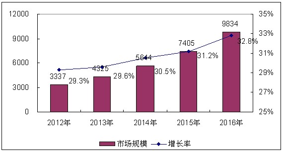 預計未來幾年我國物聯網行業將持續快速發展,年均增長率30%左右,到2016年,物聯網行業市場規模達到9834億元。