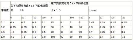 3.1.2測量用電流互感器廣泛用于對低壓配電系統電流的測量,主要準確(對電流互感器給定的等級)級有:0.1、0.2、0.5、1等,其相應的準確級在國家標準中的要求見表1。