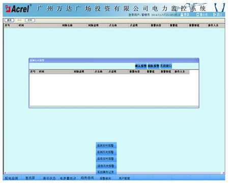 3)告警管理:系統(tǒng)具備遙測報警配置功能,報警類型包括遙測和遙信報警。系統(tǒng)報警時能夠進行信息語音提示,自動彈出報警畫面。遙測歷史報警查詢:安科瑞Acrel-2000電力監(jiān)控系統(tǒng)能夠?qū)b信、遙測報警數(shù)據(jù)進行存儲,方便用戶對系統(tǒng)報警事件進行追溯查詢。