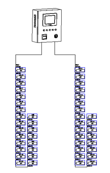 本項目通訊總線共接入二條通訊總線,總線在配電室手拉手串接后,接入壁掛式后臺,組成電氣火災系統的大動脈。箱體中漏電流互感器通過電流線接入漏電探測器,漏電探測器實時顯示漏電情況。以上所述組成一套信號穩定,精度可靠的電氣火災監測系統。本系統組網共分為三層: