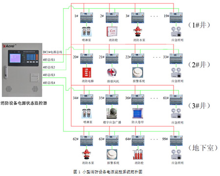 建筑物的消防安全很大程度上取決于消防設備的好壞,而消防設備能否正常工作又取決于供電電源的工作狀態。一直以來因消防設備供電電源失控造成消防設備失靈,致使火災蔓延的事情屢有發生,特別是在社會供電緊張、設備質量不佳、安全意識淡薄的時期,這一問題更顯得突出。如何從技防手段上實現對消防設備供電電源工作狀態的實時監測,一直受到公安消防部門的高度重視。并在2011年7月1日開始貫徹實施的GB 25506-2010《消防控制室通用技術要求》中做出了:“消防控制室應能顯示消防用電設備的供電電源和備用電源的工作狀態和欠壓報警信息”的強制性規定[1]。GB 28184-2011《消防設備電源監控系統》也于2011年12月28日頒布,2012年8月1日實施。該標準強制規定了消防設備電源監控系統的基本功能、試驗和檢驗規則等內容[2]。