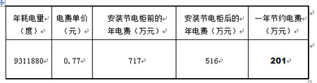 安裝節電柜以后,實測平均節電率為28%,節電效果見下表: