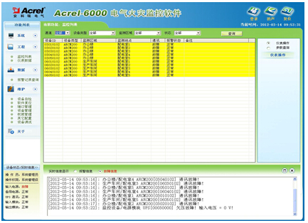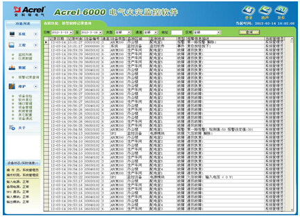 本套上位機軟件Acrel-6000電氣火災系統。主要有以下功能特點:友好的人機界面,可實時和定時采集現場設備的剩余電流數據和溫度、并有報警提示聲光報警等功能。客戶可根據實際需要對報警溫度值、漏電流值進行設置,報警故障解除時,可遠方進行復位。系統可對報警事件、日期、報警值、越線值進行記錄,并生成報表。