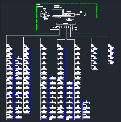 整個系統的監控中心位于配電室值班室,變電所內相鄰25塊為數量上限的儀表連接成一根總線直接連接到管理中心的后臺。組建成電力監控系統專用局域網,完成數據的傳輸。
