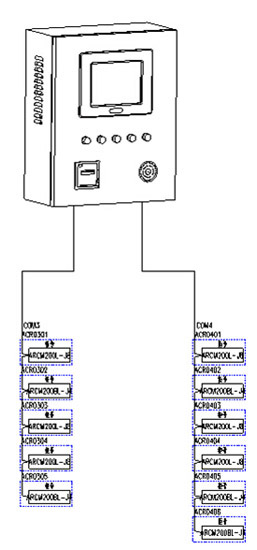 內蒙古伊泰廣聯煤化有限公司煤炭項目現場有剩余電流式儀表11只ARCM200安裝于配電室內。現場儀表采用總線方式接至消控中心的Acrel-6000/B壁掛式電氣火災監控系統。