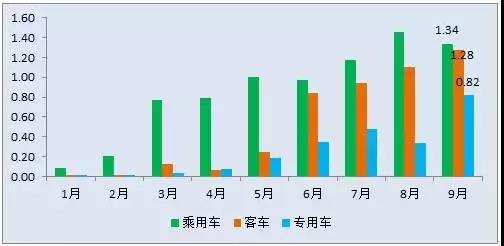 最新數據統計顯示,2017年9月新能源汽車生產約8萬輛,同比增長81%,環比增長13%;動力電池裝機總電量約3.44GWh,同比增長53%,環比增長19%。