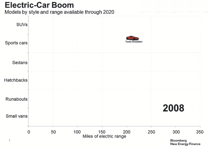 這是根據各大汽車廠商公布的到2020年前推出的純電動車型繪制出的圖表。縱軸為車型,橫軸為續航里程。
