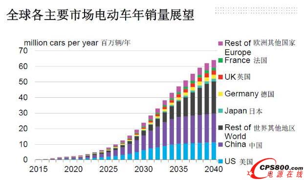 1900萬:從2016年開始中國已經成為全球最大的電動車市場,而接下來的23年中國會繼續保持第一名的位置,到2040年中國的銷量將會達到約1900萬輛。美國為第二大市場。各主要市場的年銷量在2035年后將逐漸趨于平穩,而后期快速增長的動力將主要來源于第三世界國家。