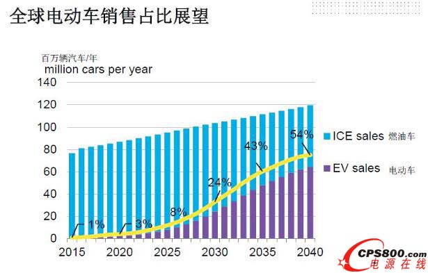 2040年全球平均電動車銷量占比將達54%