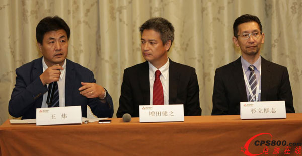 (左至右)大中國區(qū)三菱電機(jī)半導(dǎo)體高頻光器件應(yīng)用技術(shù)課經(jīng)理王煒先生、三菱電機(jī)半導(dǎo)體亞洲區(qū)銷售總監(jiān)増?zhí)锝≈壬叭怆姍C(jī)光器件部總經(jīng)理杉立厚志博士。