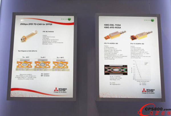 三菱電機(jī)在今年CIOE上,力推用于室外的25Gbps DFB TOCAN以及用于100G 10/40公里傳輸?shù)?00G集成TOSA/ROSA。