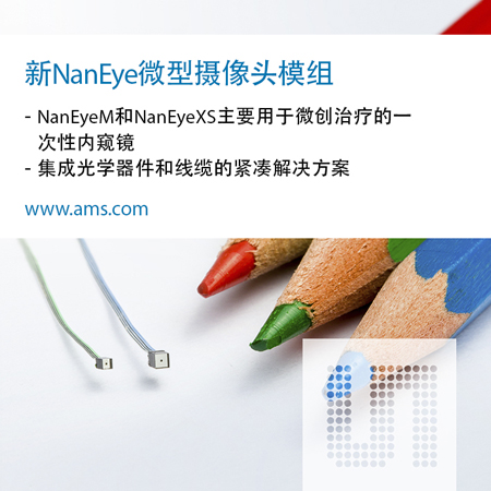 中國,2018年11月12日,全球領(lǐng)先的高性能傳感器解決方案供應(yīng)商艾邁斯半導(dǎo)體(amsAG,瑞士股票交易所股票代碼:AMS)宣布推出新產(chǎn)品,該產(chǎn)品屬于備受贊譽(yù)的NanEye系列,以業(yè)內(nèi)成功用于內(nèi)窺鏡的原始微型圖像傳感器模塊NanEye2D為基礎(chǔ)。今日預(yù)先發(fā)布的NanEyeM和NanEyeXS將助力實(shí)現(xiàn)用于微創(chuàng)手術(shù)的高性能一次性內(nèi)窺鏡的生產(chǎn)。
